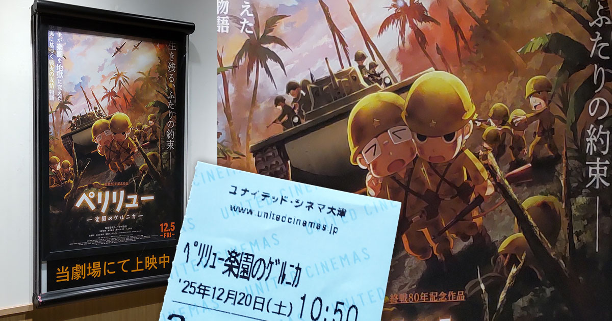 昨日(2025年12月20日)いつものごとくユナイテッドシネマ大津で映画『ペリリュー -楽園のゲルニカ-』を見てきました。10時20分からだと思っていたら10時50分だったのでギリギリかと思っていたら余裕が出来ました。7 … 続きを読む
