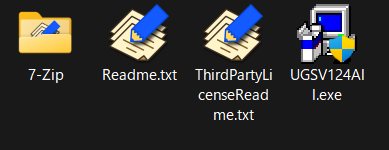 とファイルとフォルダが出来ているので、他の動いているアプリなどを全部終了してから、「UGSV124AII.exe」をクリックします。(この画面開いてたら消すw)
