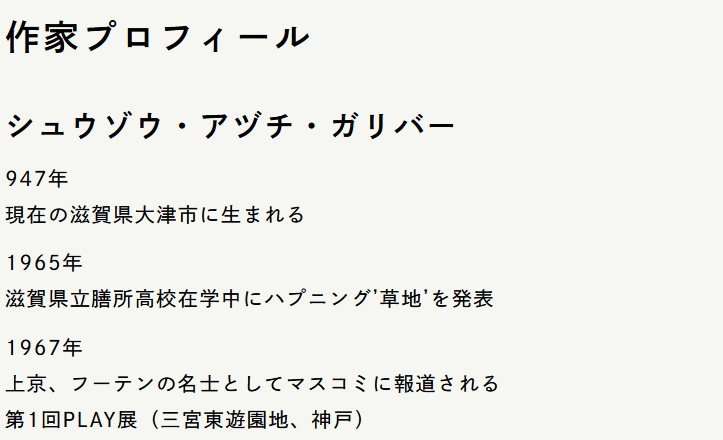 この写真の作品の作者のプロフィールを探したところ、滋賀県立美術館の企画展のページがヒットしました。