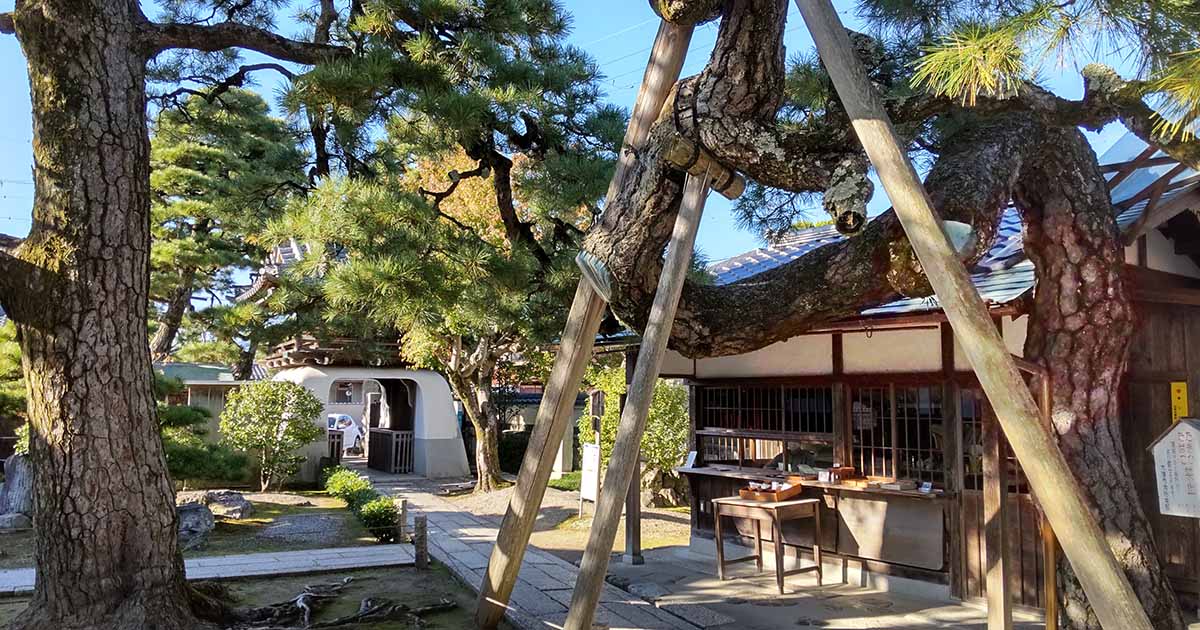 ③お守りとか売っている授与所。境内は立派な松の木が何本もありました。