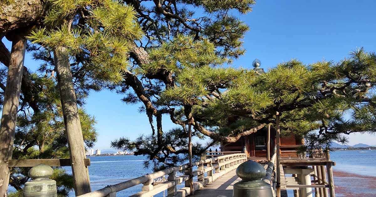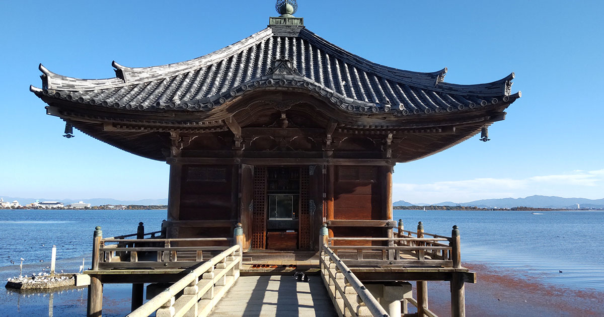 浮御堂は凝った造りの木造建物だなと思います。天気がよくて琵琶湖の景色がよく見えました。